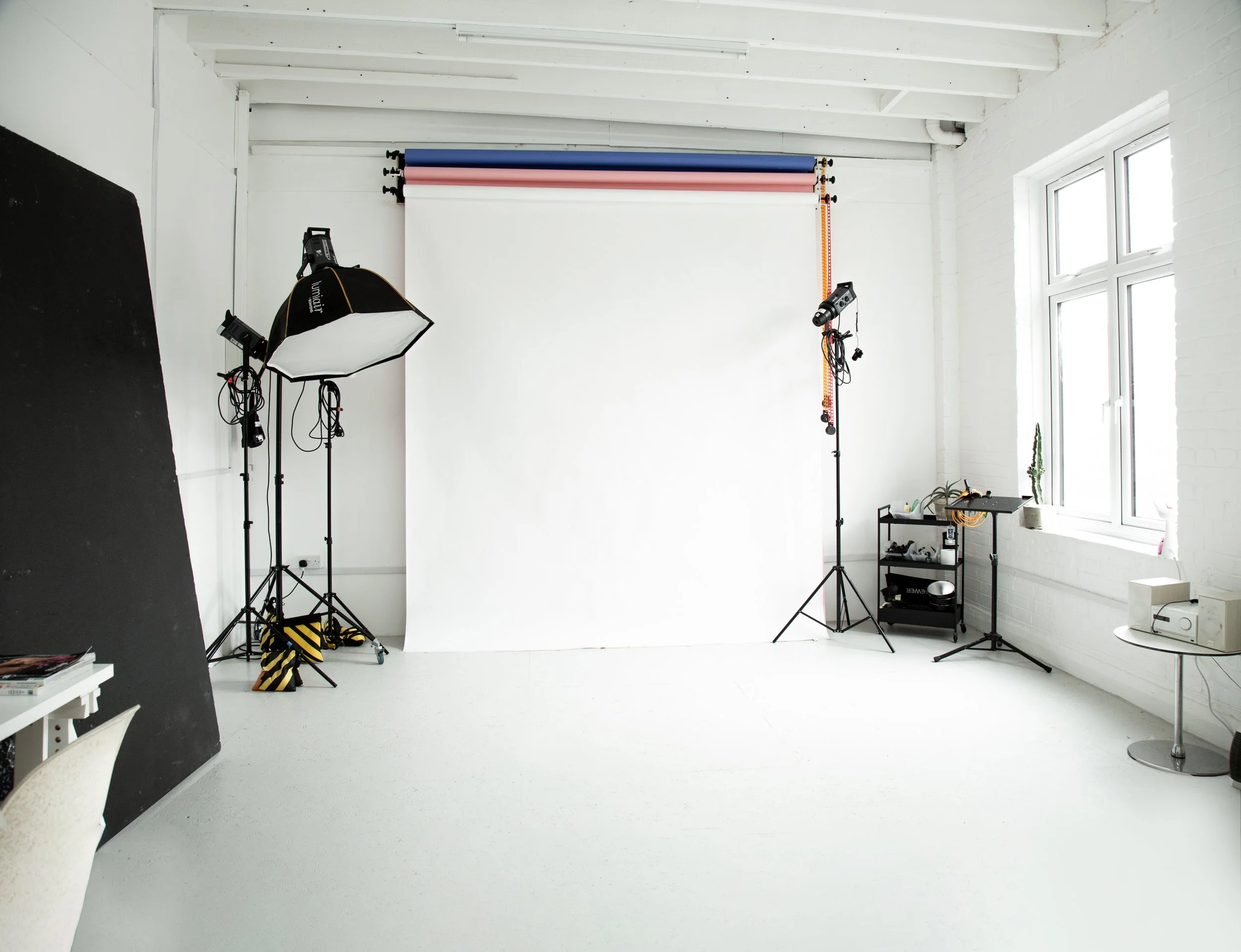 Lighting equipment and paper backdrops are included (providing our shoe protectors are worn and no paper tears are made). There is a coffee, tea, and hot chocolate area for refreshments, and bottled water is included in your booking.